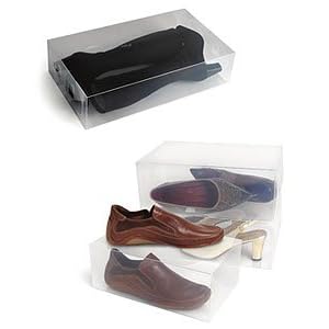 These unique low-boot storage boxes are designed to change the way you think of about shoe boxes. Unlike traditional boxes, these clear shoe storage boxes don't have lids! They open from the front and back, and you can simply pack them flat to store them away in the included custom fitted clear storage bag. Each clear boot box holds a pair of low-cut women's boots, and is the idea closet organization solution for anyone with a raging shoe collection or unruly closet! Made from durable polypropylene, the space-saving, stackable, clear shoe boxes are ventilated and mold resistant. Perfect for protecting your shoes when they are not on your feet! The organizer boxes are also great for storing fashion accessories like handbags, belts and scarves. Sold in a set of 5 boxes. Assembly level/degree of difficulty: No Assembly Required.